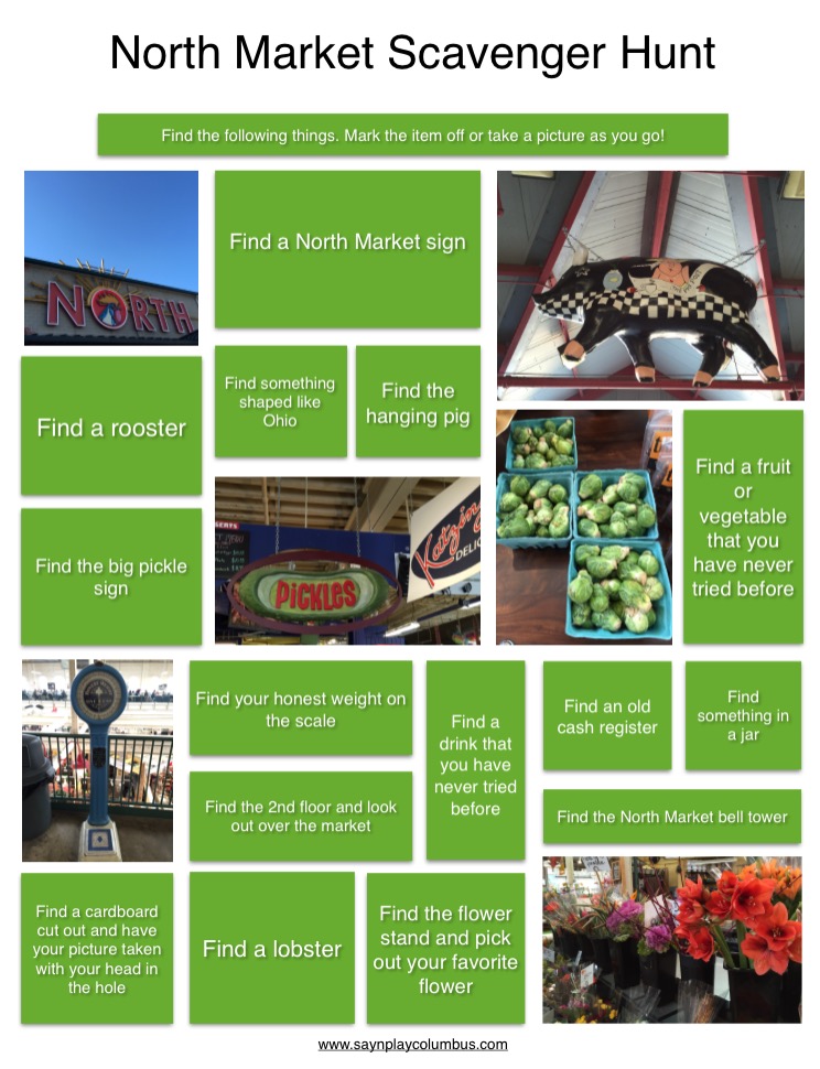 Once you have completed the scavenger hunt, stay for a treat or for lunch. Be sure to check out Little Adventures Await, North Market for Kids, to help navigate your way into the market and guide your way to some of the not to be missed food.