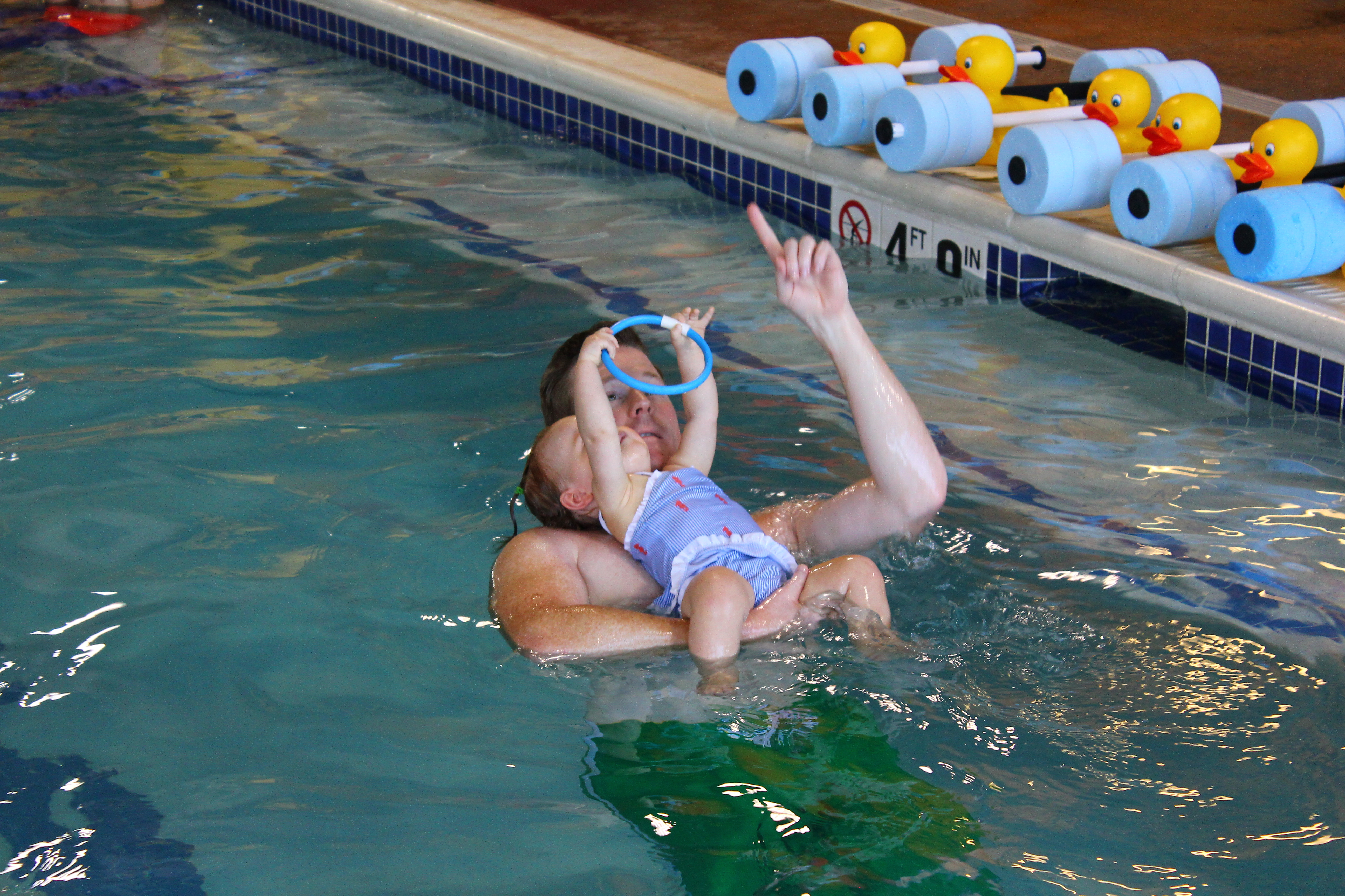 5. Fast/Slow: The concepts of fast and slow will be used when moving through the water. You will be modeling the words while moving your child fast or slow throughout the water. Understanding tempo and movement is also key to understanding spatial awareness.