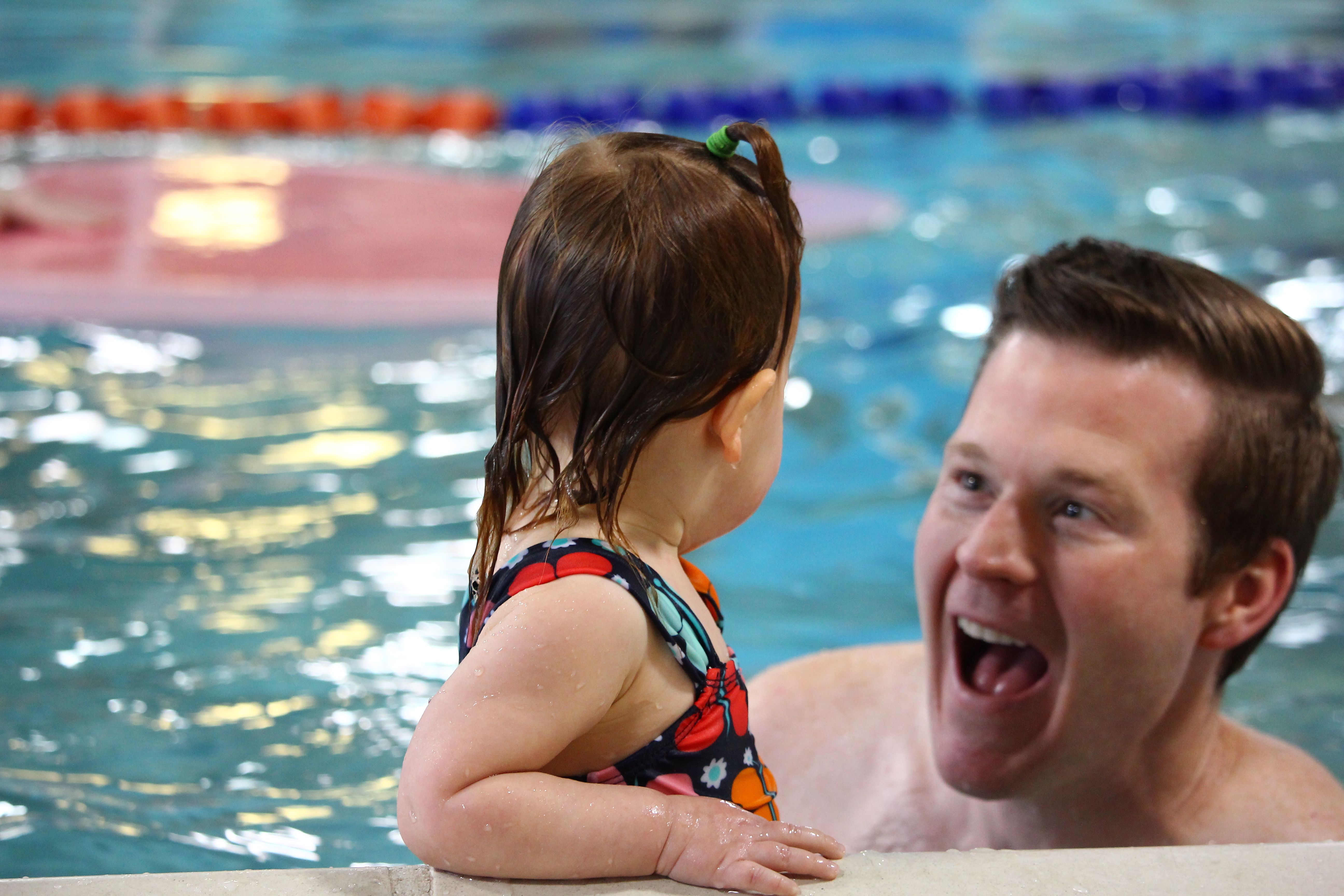 Bonding Time: My daughter is enrolled in the Goldfish Mini 2 swim classes. In these classes, it is expected that one parent be in the water with their child for the entire lesson. Each week, my husband and I alternate swimming with our daughter. During dinner the other night, we recently discussed how much we look forward to the 30-minutes in the pool with our daughter. It is one-on-one, uninterrupted bonding time where she sings songs, practices her swim skills, and checks in for lots of hugs.