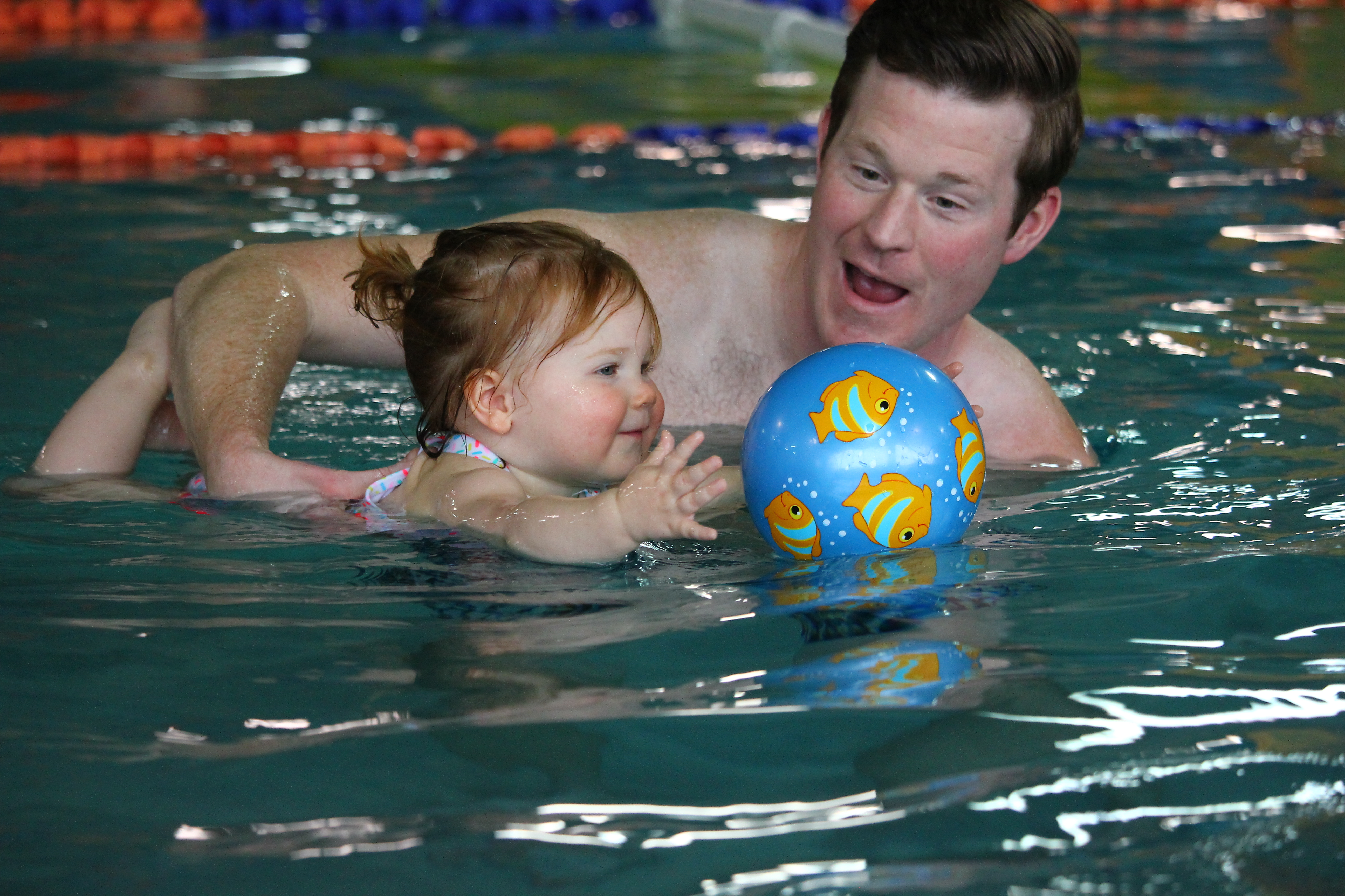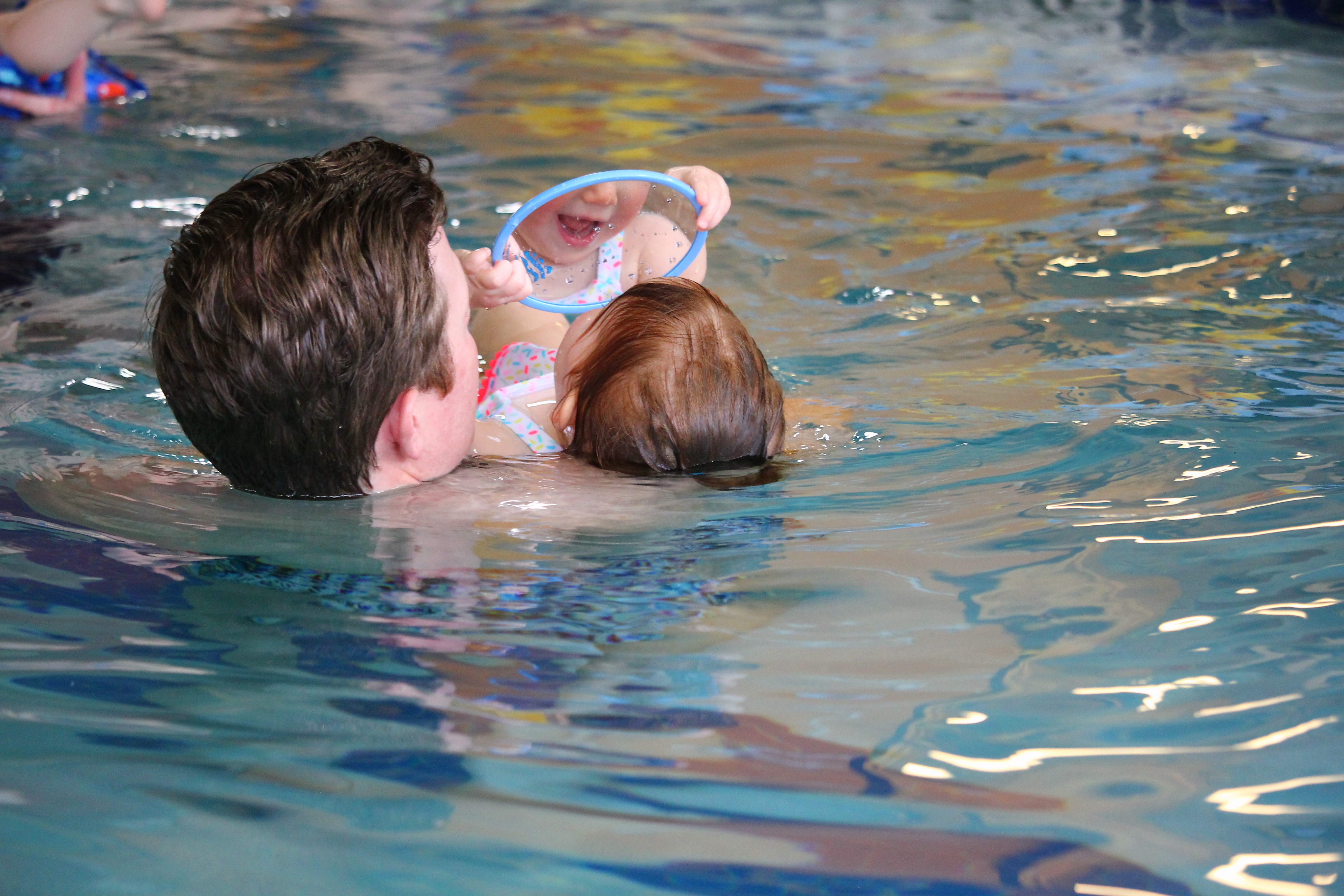 Back: Part of the swimming lesson focuses on back floats. Now, when my daughter hears “time to float on your back,” she leans back and assumes her otter back-float position.