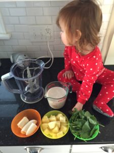Make a Green Smoothie. Not only is making a smoothie a great way to build your child’s language skills, but it’s a great way to sneak some healthy food into your child’s diet. I used this recipe from Super Healthy Kids for inspiration for the perfect green smoothie.