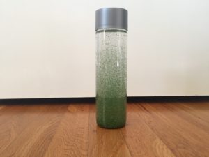 Set up a Green Sensory Bottle. Jess, over at This Twin Life, posted a St. Patrick’s Day Calm Jar how-to. A year ago I made a variety of sensory bottles for my daughter. She was excited for the newest addition to her collection.