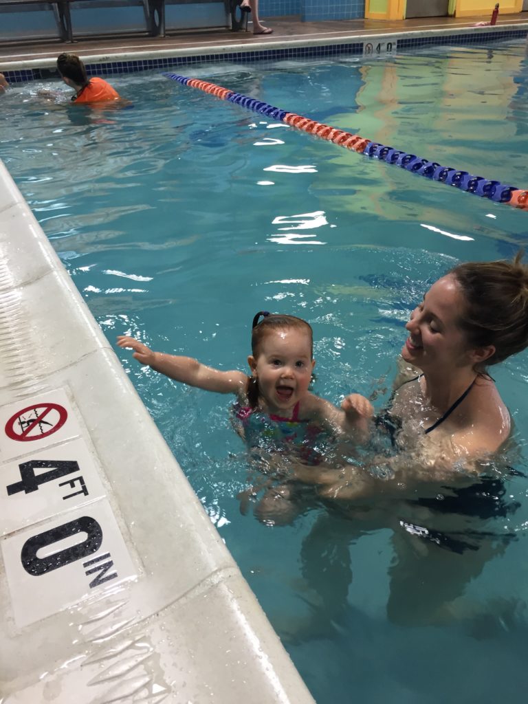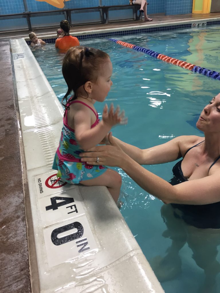 When it comes to water, my daughter is fearless. She jumps right in with the expectation that we will be there to catch her. We talk to her about water safety and pool rules (“use walking feet,” “hold mommy’s hand,” etc.), but she is not yet grasping how powerful water can be and the caution she needs to demonstrate when she is in and around it. For this reason, I want her little body to know what to do if she were to fall into water. This is one of the major reasons I have had her enrolled in swim lessons from such a young age. If she were to fall in, I want the safety skills that we practice in our weekly lessons to kick in from motor memory.