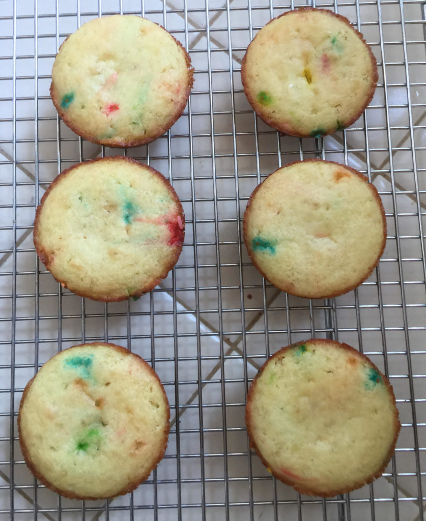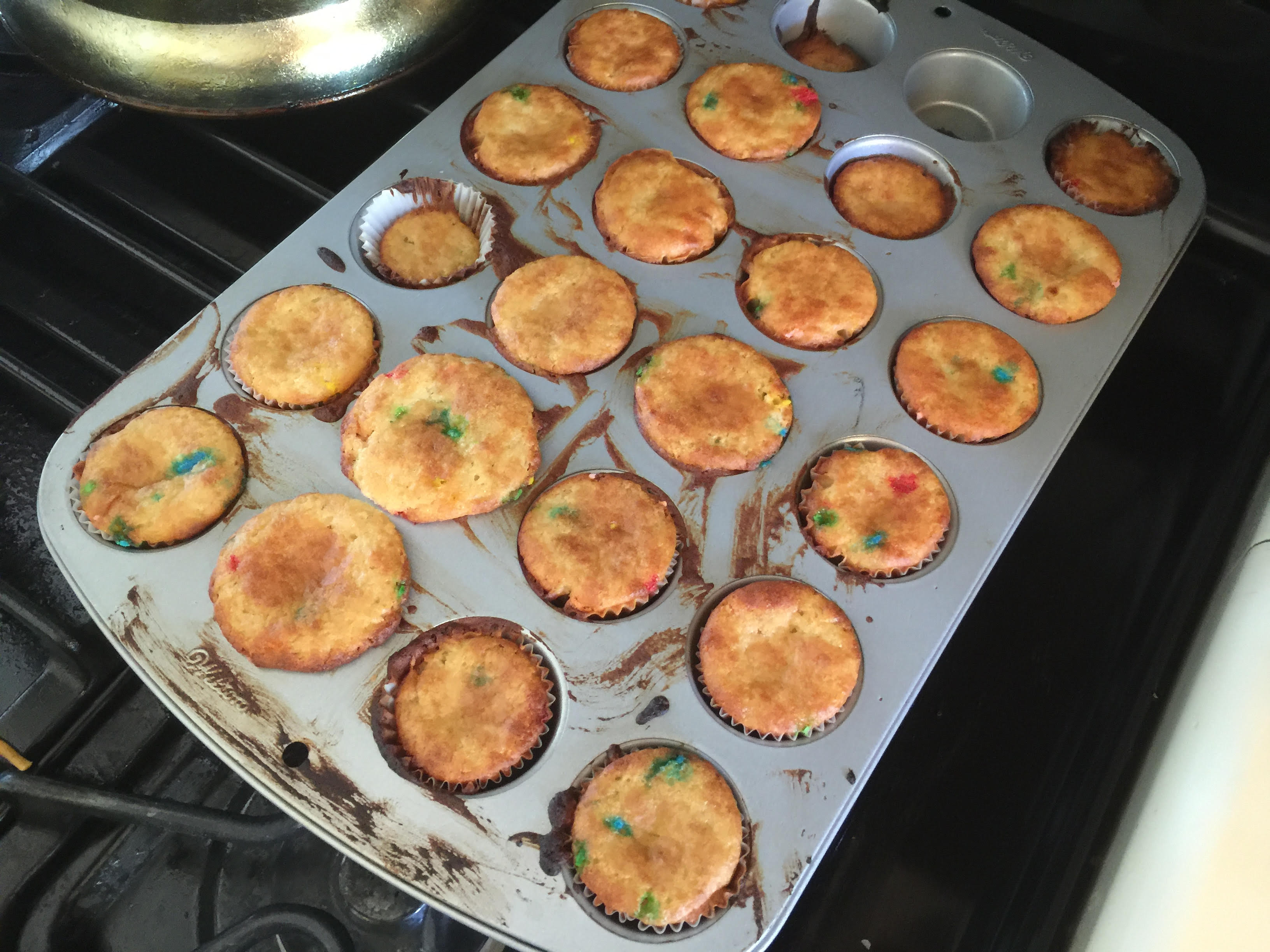 That pretty much sums up the other day when we planned to make blueberry muffins. That is, until I realized we didn’t have any muffin mix. Oh, and I’m also allergic to gluten. And apparently really love making things complicated. BUT we did have gluten-free pancake mix. With Funfetti! And what small child (or any reasonable adult, for that matter) wouldn’t love to make some awesome rainbow/unicorn/fairy muffins? The kids were stoked.
