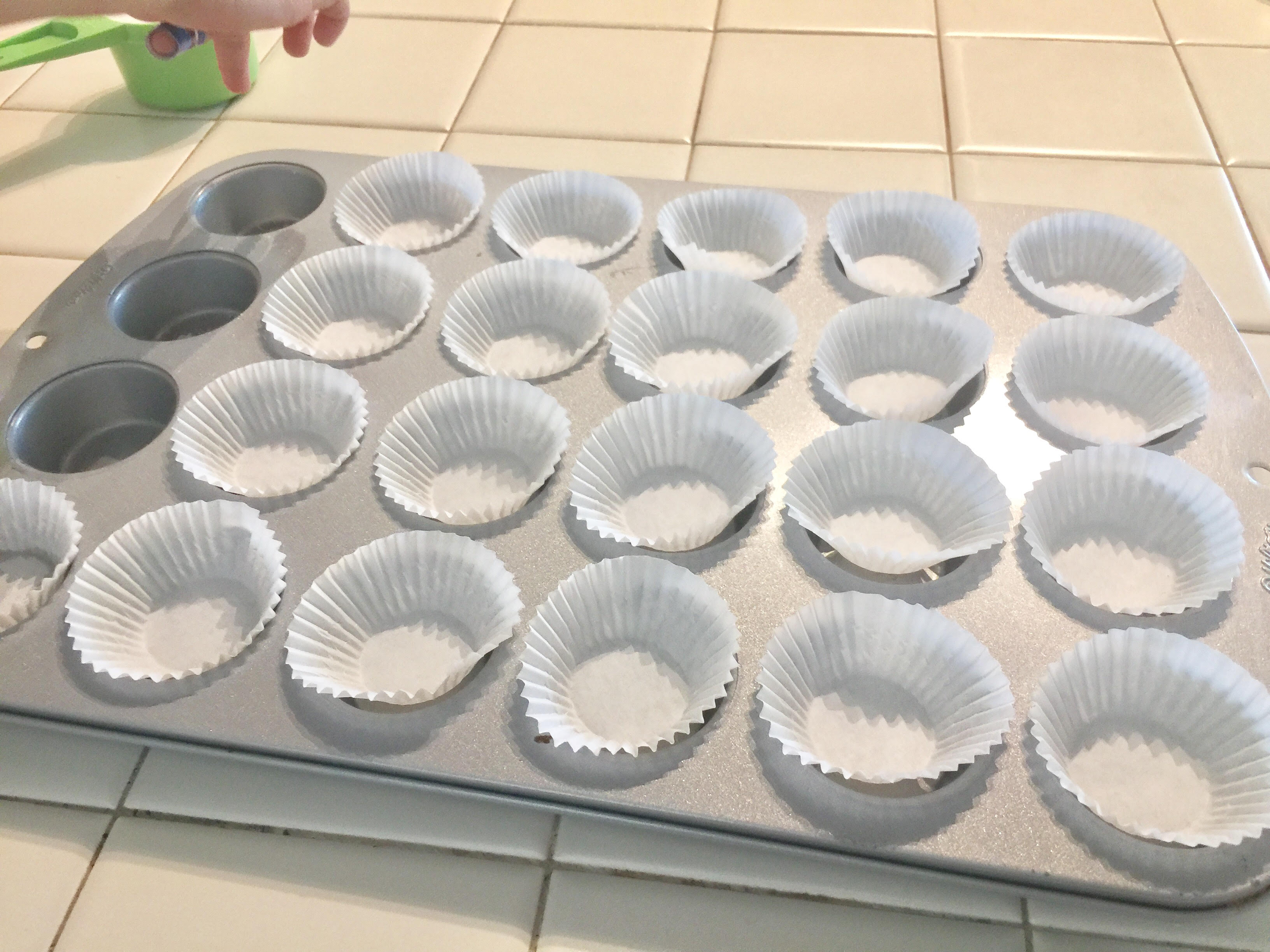 But ….. How do you turn pancake mix into muffin mix? Well, like anything good in this world, there’s a Pinterest hack for that. Whipping out my phone with kids begging to see vidoes of themselves in the background, first I found this recipe from Family Fresh Meals [https://www.familyfreshmeals.com/2014/06/easy-baked-pancake-muffins.html#_a5y_p=3502654] for “Easy Baked Pancake Muffins.” I was absolutely kicking myself for not having an amazing assortment of silicone cupcake liners in all these bright and fun colors. Like, how perfect is this picture [https://www.pinterest.com/pin/186547609541846497/]? I die. Alas, I just had plain ‘ol white paper liners. The struggle is real, people!