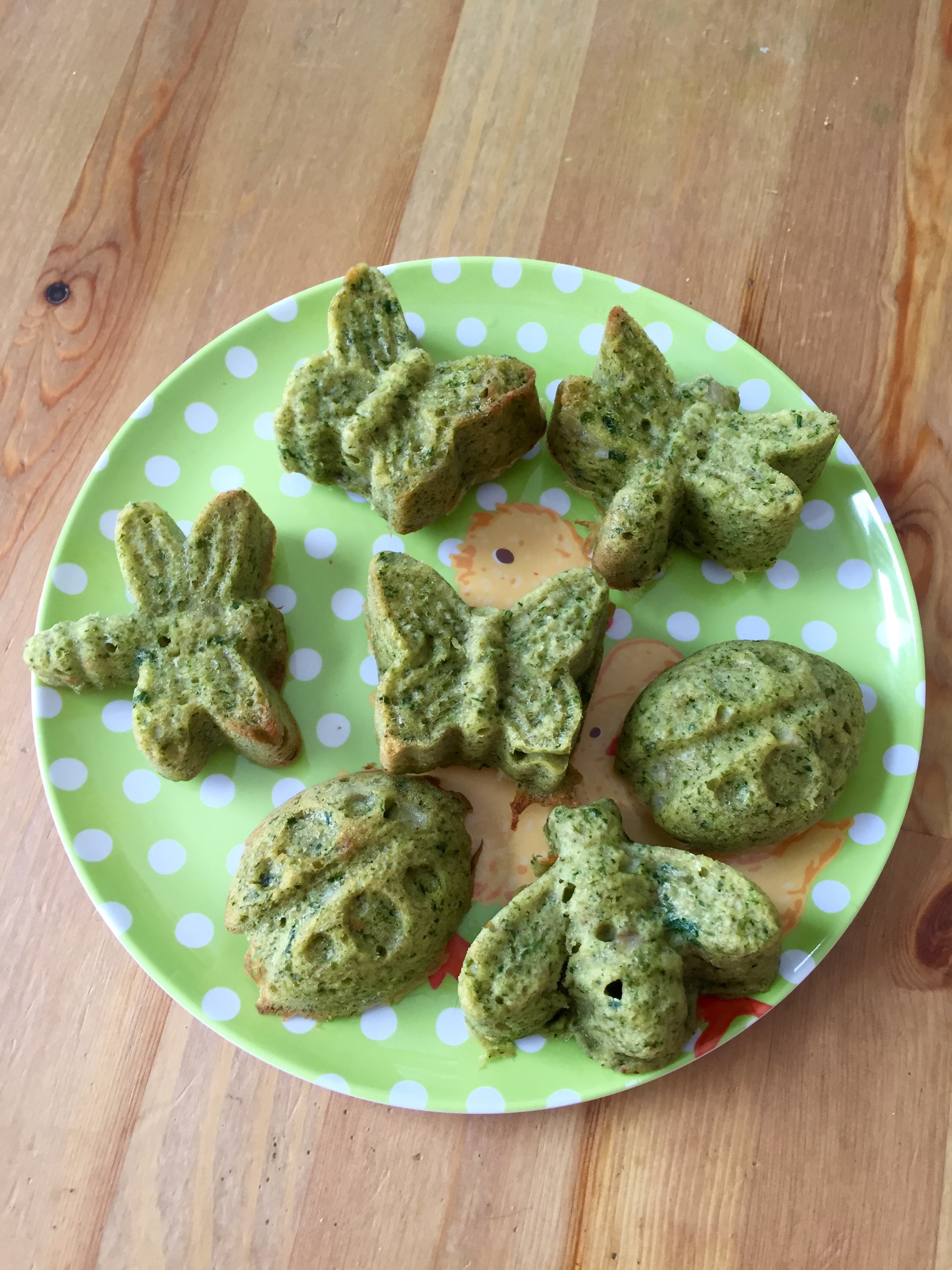 2 big cubes (about the size of a baby food jar) cooked, pureed vegetables (I usually make this recipe with green cubes, but you can also do it with sweet potato, carrots, cauliflower, or beets – though I will warn that while the beets turn the batter a delightful shade of hot pink, the baked muffins sadly don’t retain much of the pink color!)