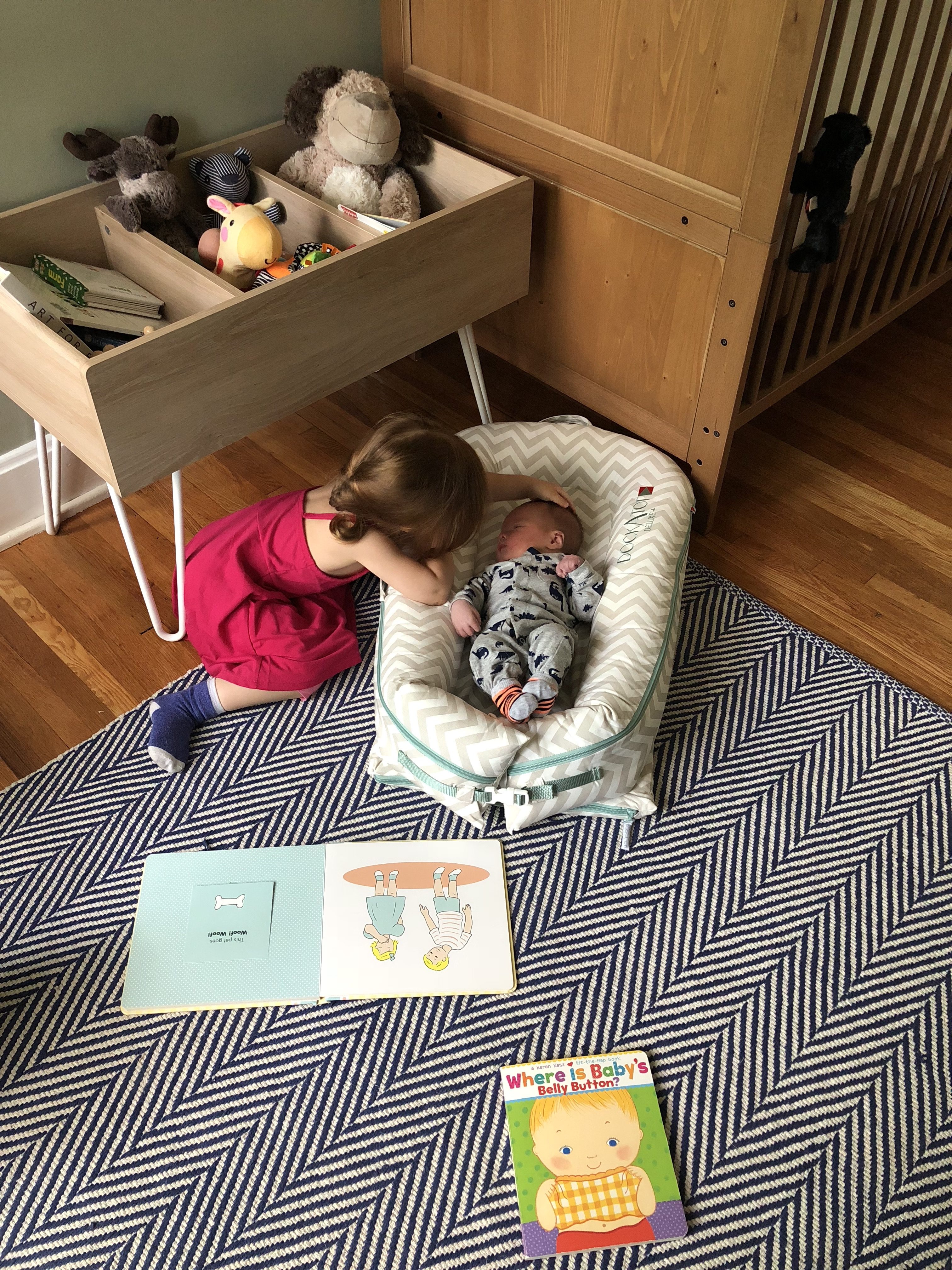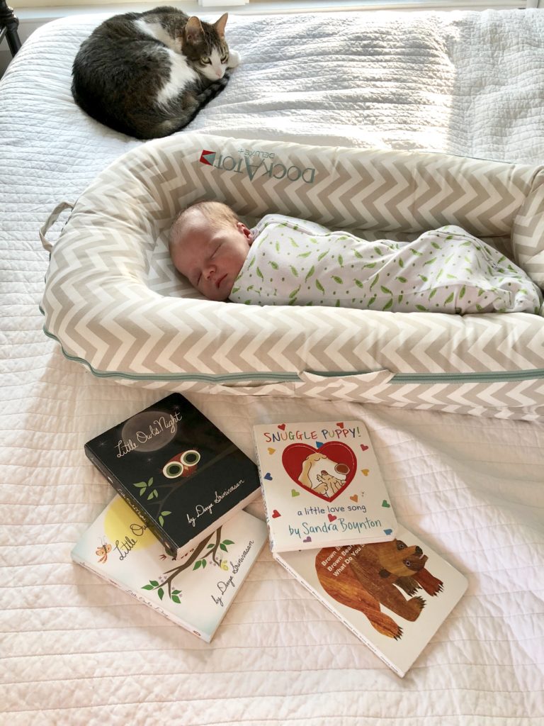 I love the portability of the DockATot. The dock is designed with two handles, one at the top and one on the side, which makes it easy to carry from room to room – even with baby in my arms. Our newborn has been home with us for two weeks, and we have already had the dock in every room in the house. I also love that the DockATot creates a designated “safe space” for my newborn that is an easy visual boundary for my toddler. I can lay baby down in the DockATot with a few reminders to my toddler that the dock is the baby’s space. She does love him tremendously, so sometimes it takes more than a few reminders!