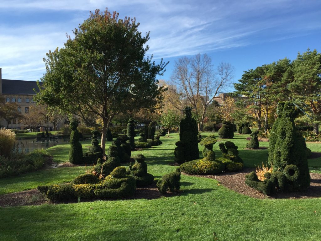 Take a stroll through the Topiary Park and see if you can spot the monkey and the pug.