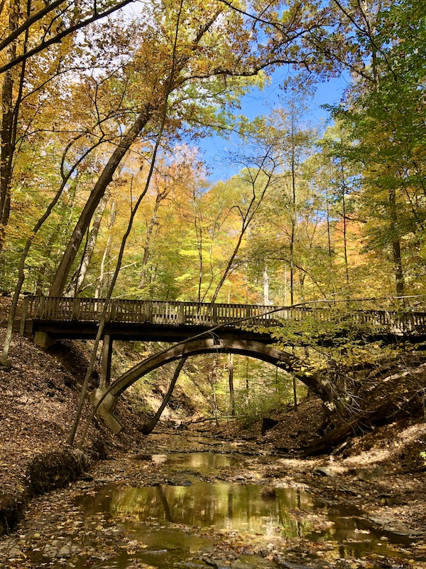 Highbanks Metro Park: Dripping Rock Trail at Highbanks Metro Park is a 2.6 mile loop that travels through the forest and along a creek. The sun dappling through the golden leaves is breathtaking.
